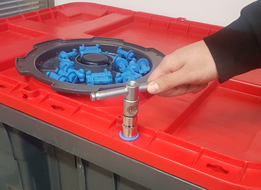 Герметичный контейнер представляет собой инновационную, экономичную и компактную упаковочную систему. Три различных типа крышек и инновационный способ закупорки обеспечивают максимальную безопасность, а также водо- и воздухонепроницаемость. Коническая форма дает возможность разместить пустые контейнеры один в другом, увеличивая их количество в транспортном средстве. Благодаря надежной конструкции контейнеров их можно штабелировать, экономя 75% места для хранения. Сочетание большого количества эффективных компонентов, таких как встроенный пластиковый поддон, выпускное отверстие, предохранительный клапан и т. д., делает контейнер простым и безопасным в обращении.
