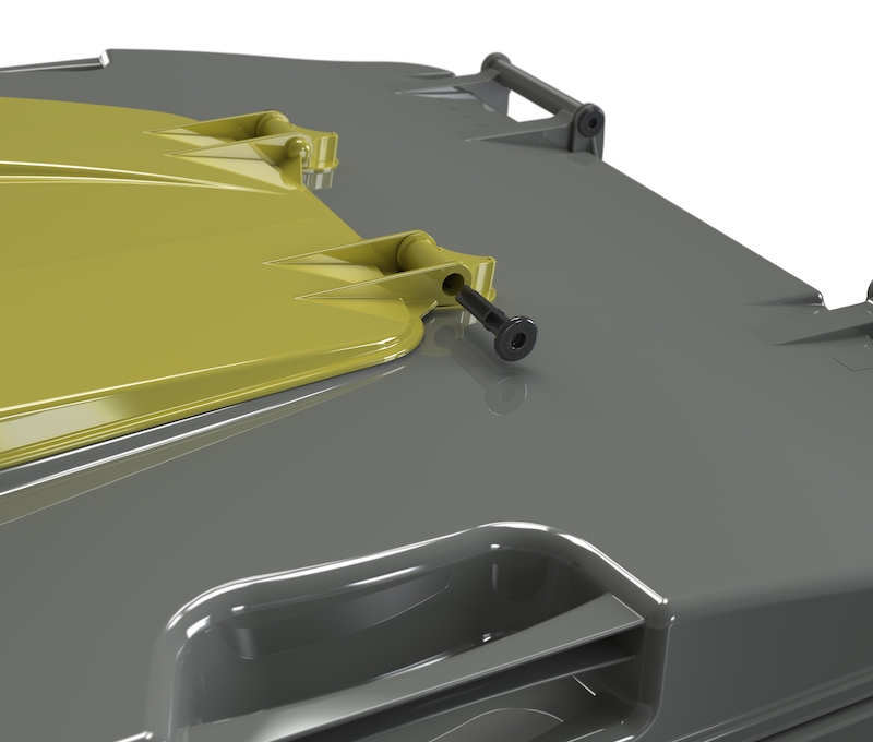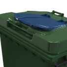 Контейнеры с крышкой в крышке подходит для людей с ограниченными возможностями. Дополнительная крышка открывается на 180 ° и имеет небольшой вес. Эта функция также дает возможность простого способа цветовой идентификации для разных фракции вторсырья и отходов. Крышку легко и быстро заменить.